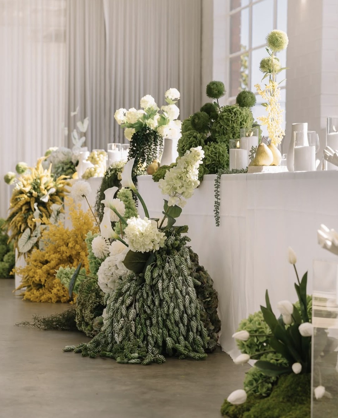 Looking for wedding details? These vibrant green and white flowers offer an ideal setting for saying ‘I do.’ An exquisite touch for a beautifully styled ceremony by @botanicaltheory