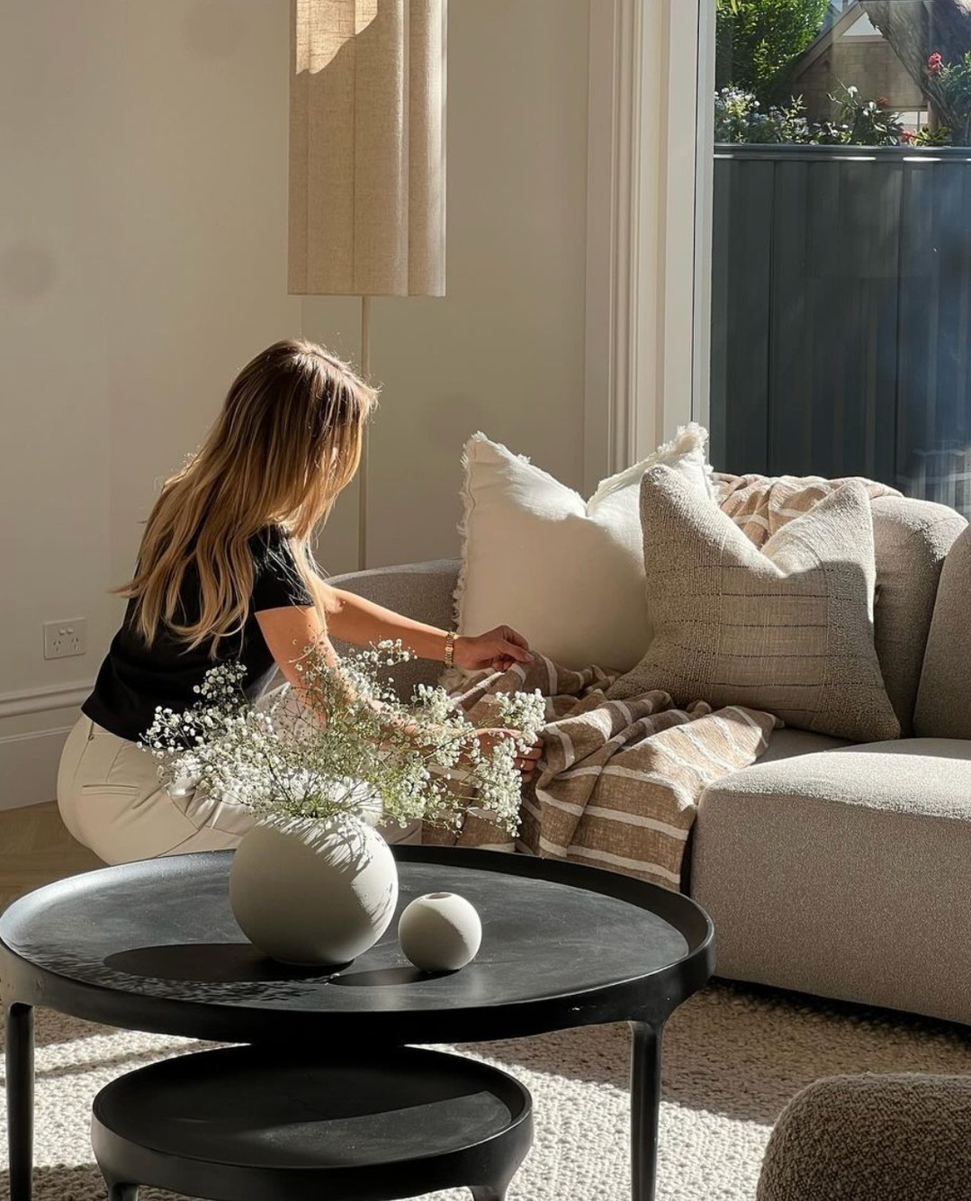 All about the details. Warm monochromatic tones in this beautiful Bungalow living room styled by @artdepartmentstyling ft, Sycamore Spray Natural.